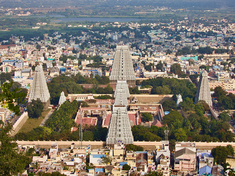 Today we will join thousands of pilgrims on the 14km (8.7 miles) Girivalam path around the sacred Arunachala hill in Tiruvannamalai. This is not a pristine hiking trail, it is often performed barefoot, in silence, and in a clockwise direction to to absorb it’s powerful healing vibrations. The walk usually takes 3 to 4 hours, passing eight holy lingams (Ashta Lingams) surrounding the hill that is said to embody Shiva, The Great Destroyer.