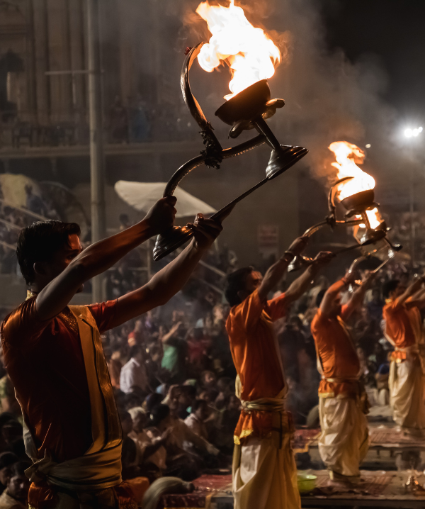 Time permitting, as the sun sets, the river becomes the stage for the mesmerizing evening Aarti. We will sit where fire and devotion rise together in an offering to the divine. Along the ghats the eternal cycle of life, death, and liberation is witnessed with reverence and acceptance. This is not a passive experience but an immersion into one of the most potent spiritual landscapes in the world, where the energy of surrender, renewal, and transformation can be felt in every moment.